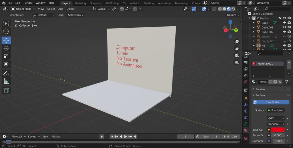 We realized very quickly how much of a refresher this actually was. It gave us a chance to remember the hotkeys, think through processes we used to have down by muscle memory. It gave us a chance to remember how to add text to a scene, use loop cuts, make edges sharp, etc.