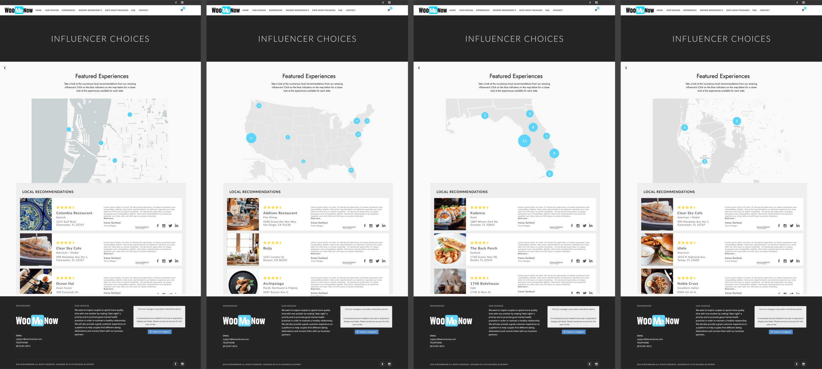 In the future, he plans to expand to several major cities, so keeping that in mind, the current design wouldn’t be scalable. He needed a new method for his customers to view each date night excursion all in one place. In the end, a map function was designed that allowed him to create “excursion points” shown on a map you could use the filter options to narrow down possibilities and click “into” points to further zoom into an area with multiple excursions. Similar to how Google map operates, this function would show the details of the excursion once clicked on and provide a booking button to allow a quick “one-stop-shop” for all available date night experiences.