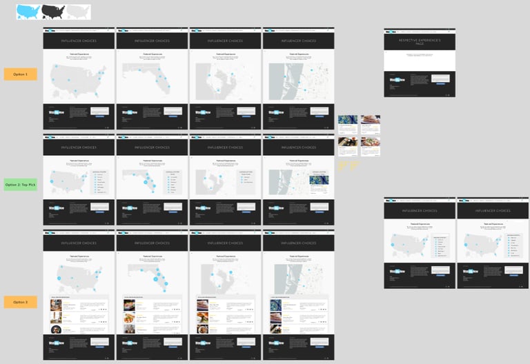 Ran a competitive analysis to determine successful event platforms (ticket companies such as ticket master and map platforms like WAZE and google maps). Since we wanted to simplify the experience and keep it all on one page rather than sending the user off to different “region-based” pages to view the experiences available, the design focused on how to bring all the experiences to one page of the website.